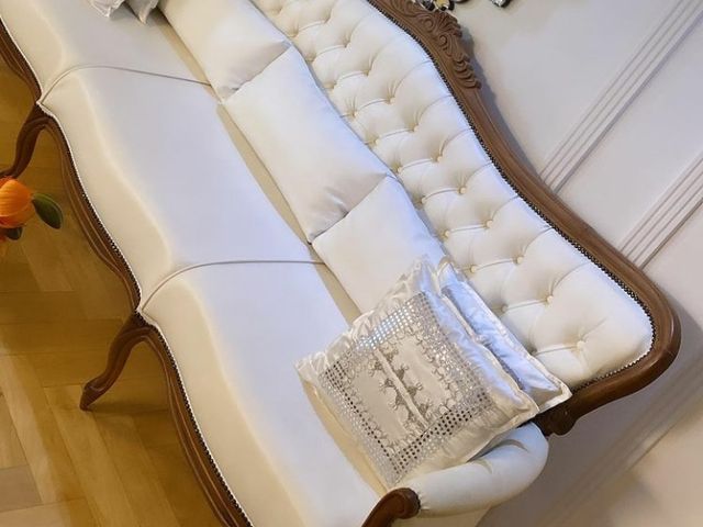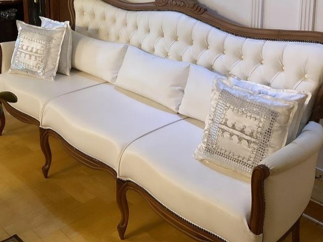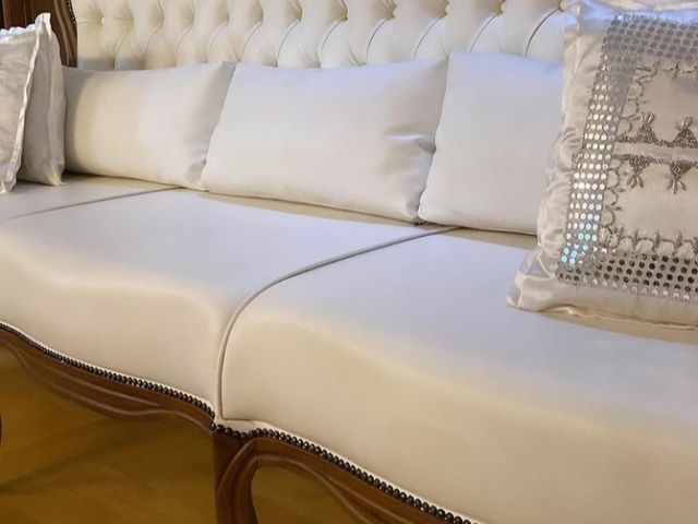Sofá modelo Luíz XV em Korino com capitonê.