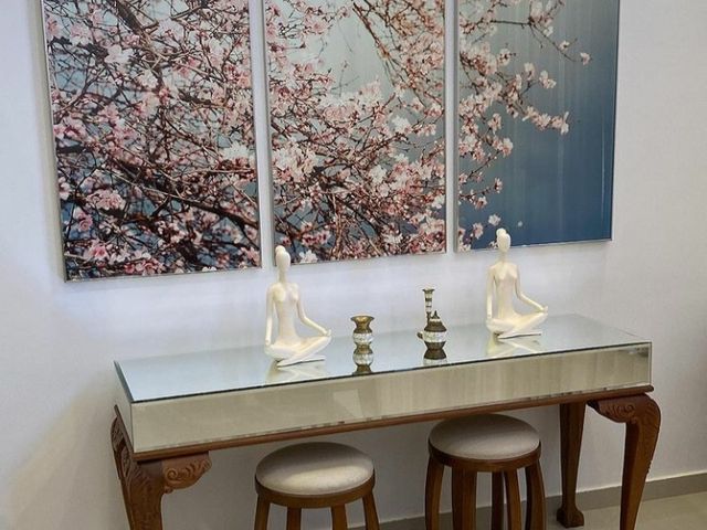 Composto com mesa de centro clássica toda em madeira maciça (Jequitibá)