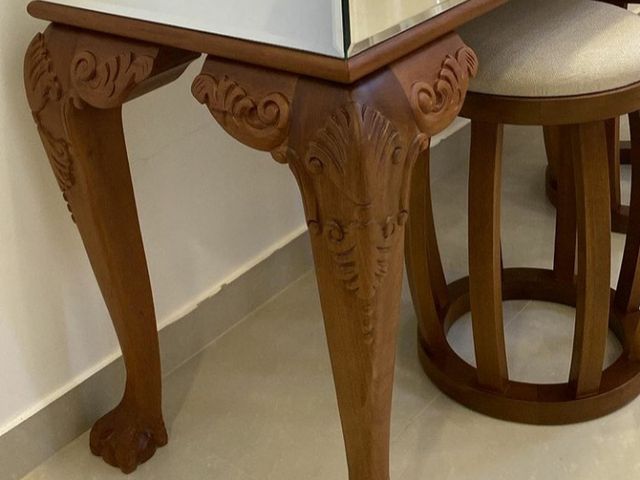 Tampo em Lâmina freijó e pés maciço, madeira Cedro Arana.